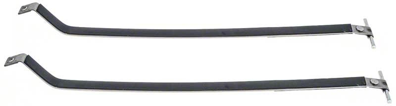 Reproduction of the original style fuel tank mounting straps designed for use with 1982-2002 Camaro and Firebird models. Each strap is manufactured in quality stainless steel to original factory dimensions replicating the original in design and fitment. When replacing your fuel tank don't use ordinary steel straps... Use stainless steel! Features a ribbed design as original. Looks great and last longer than conventional galvanized straps. Approximate strap measurement bend to bend is 26-3/8" x 1". Rubber anti-squeak inserts are included. Sold in pairs.