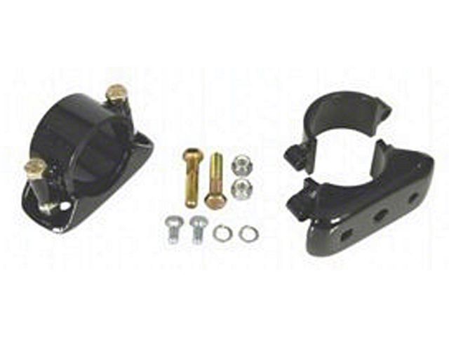 These leaf spring pads are used when installing a new rear end housing or when relocating your leaf springs to accommodate a larger rear tire. The steel adjustable leaf spring pads clamp to any 3" axle tube. Simply locate and center the axle housing, set the pinion angle and leaf spring positions, and then clamp the spring pads in place. We recommend you permanently weld the spring pads in place after you set the pinion angle. The spring pads are compatible with 2-1/2" wide leaf springs.