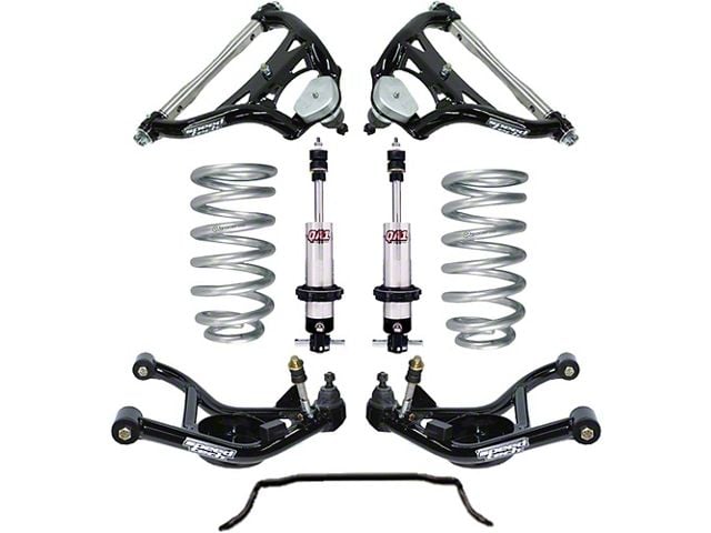 The Speedtech Performance Road Assault front suspension package is the ultimate complete street and race upgrade for your '70-'81 Firebird when using the stock GM sub frame and standard mount shocks. Through extensive engineering and testing all parts in this kit are carefully matched to each other, designed to greatly improve your car's handling while still maintaining an enjoyable drive. All parts are a direct bolt-in, no frame modification required. Speedtech tubular control arms offer corrected geometry, performance components, and are stronger and lighter than stock arms. Heat treated, light weight, chrome moly tubular sway bar decreases dynamic body roll. Standard QA1 double adjustable shock system provides ease of installation with coilover style ride height control and simple