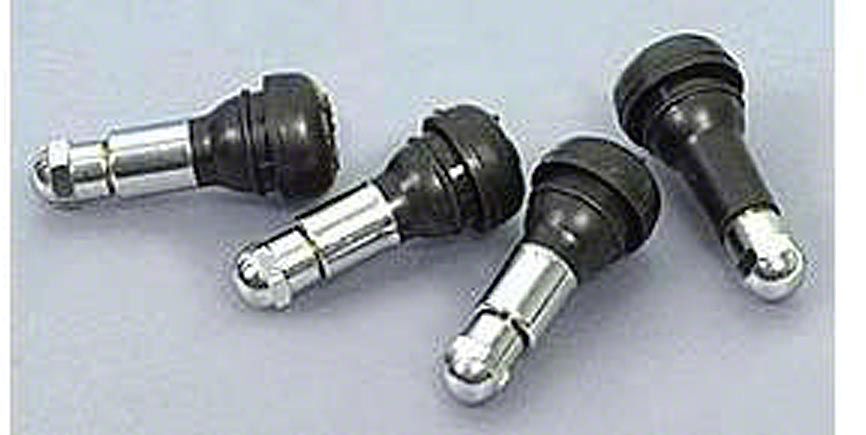 Since it's always a good idea to replace the valve stems when you get new tires, why not go the extra step? This 4-piece set of valve stems has a compression fit just like plain valve stems, but the valves feature a shiny chrome sleeve topped off by a matching chrome cap. They fit most steel or aluminum wheels and give the perfect finishing touch to your Firebird's new tire & wheel combination.
