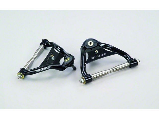 Install the Hotchkis Tubular Upper A-Arms on your 70-81 Firebird or Firebird and gain vastly increased handling and control. These TIG welded; bolt-on arms offer increased camber and caster adjustment over stock, for ultimate performance. Smooth operating Delrin bushings allow the Arms to move through their travel easily. Finished in gloss black powder coat, the Arms are ready to install and are complete with ball joints, offset cross-shafts, offset caster inserts, Delrin bushings and droop stops.Exceptional handling performance when combined with the Hotchkis Performance Tubular Firebird Upper A-Arms from Eckler's.