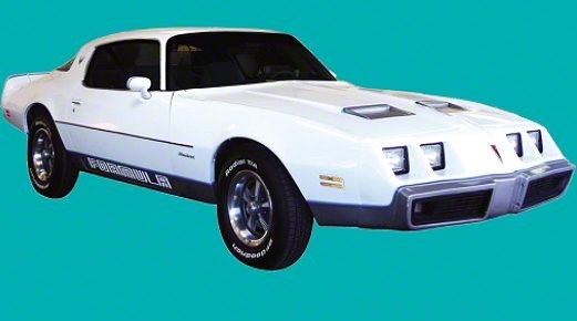 This kit contains approximately 33 components. Each stripe is identified with body panel location, and is contoured and pre-molded to your body panels for a perfect fit. The tri-color stripe separates a two-tone paint line. The large Formula door names are the same color as your upper body paint color or black. One pair from the following list is included with each kit.
