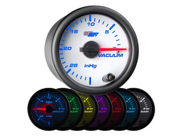 Vacuum Monitoring and Custom Look. The Vacuum Gauge; White 7 Color provides enhanced vacuum monitoring and a custom look. This high-quality gauge ensures you can accurately monitor your engine's performance, making it an essential upgrade for performance enthusiasts.