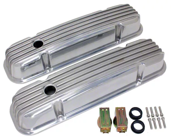These are Pontiac full finned polished aluminum valve covers that fit 326-455 engines for your 1967, 1968, 1969, 1970, 1971, 1972, 1973, 1974, 1975, 1976, 1977, 1978, 1979 Firebird. There is one hole in each cover. The Inner Dimensions are 2-3/4" in Height, 19-1/4" Long, and 4-3/8" Wide. Dress up your engine compartment with out breaking the bank. Trust Eckler's Firebird For all your 1967-1979 Firebird parts.