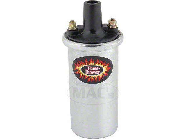 Our 40,000 volt Flame-Thrower chrome coil can benefit virtually any distributor type inductive system. Its higher voltage allows larger spark plug gaps for added power, smoother response and better fuel economy. It is also the perfect coil to go with the PerTronix Ignitor breakerless ignition. These coils are internally resisted so installation and wiring is drastically simplified. Oil filled coils offer great heat control for street driven vehicles.