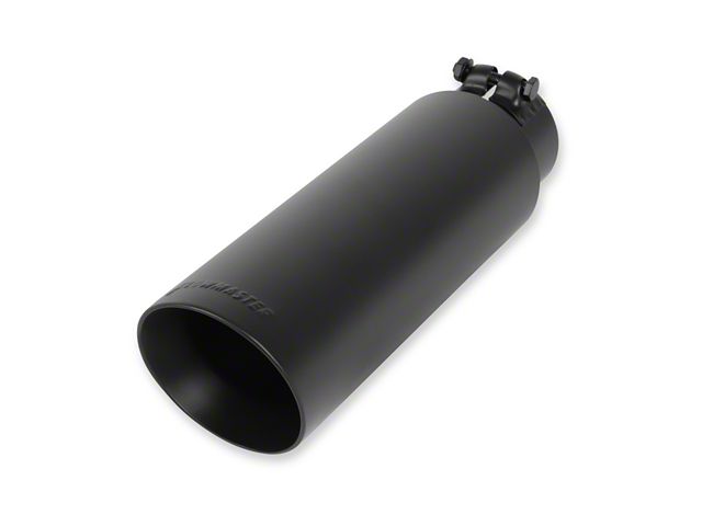 Flowmaster introduces this 304S stainless steel tip that features a black ceramic coating. The tip has a double wall construction and an angle-cut end with the Flowmaster logo embossed into it. This tip is a clamp-on design that has a 4.00 in. diameter, is 13.00 in. long and will fit over a 3.00 in. pipe. Sold individually.