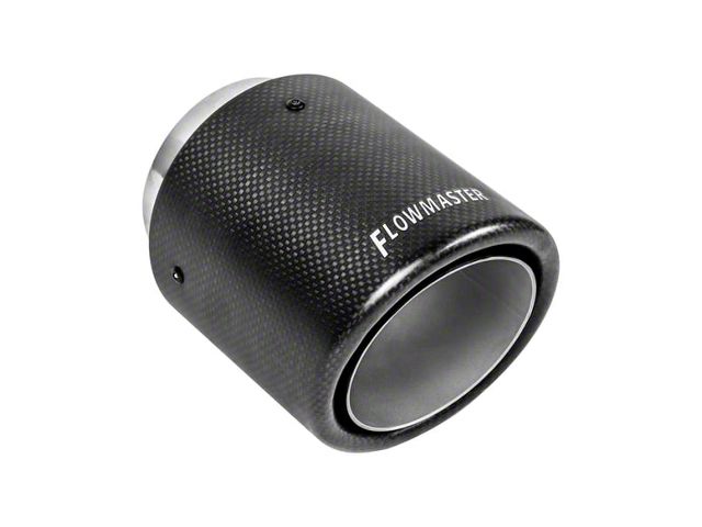 This great looking exhaust tip features a 4.00 inch O.D. angle cut rolled edge outer shell formed from real carbon fiber material. The carbon fiber is mated to a 304S stainless steel inner core for durability and good looks. This is a universal weld-on exhaust tip for 3.00 inch O.D. tubing, features the Flowmaster logo and is 5.25 inches overall in length.
