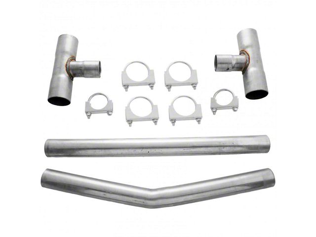 Designed to ease the installation of a crossover pipe in a dual exhaust system. Kit includes H-pipe connectors, balance pipe, and clamps. Available in various sizes.