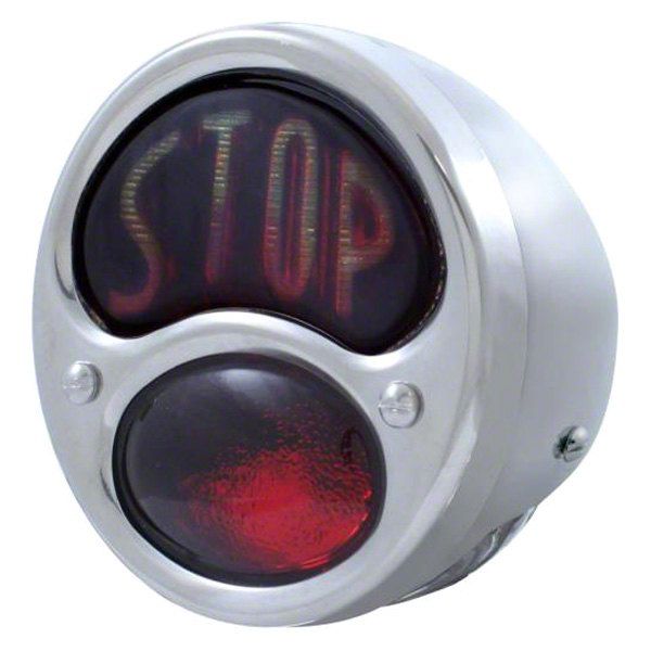 12-Volt Tail Light; Stainless Housing; Red Lens with STOP; Driver Side (28-31 Model A)