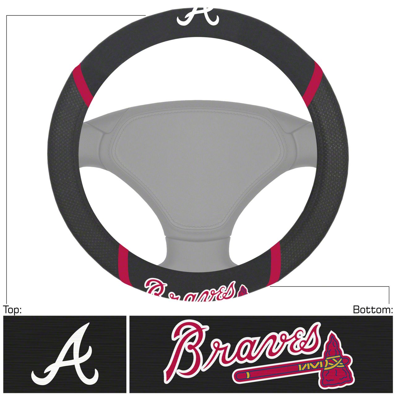 Steering Wheel Cover with Atlanta Braves Logo; Black (Universal; Some Adaptation May Be Required)