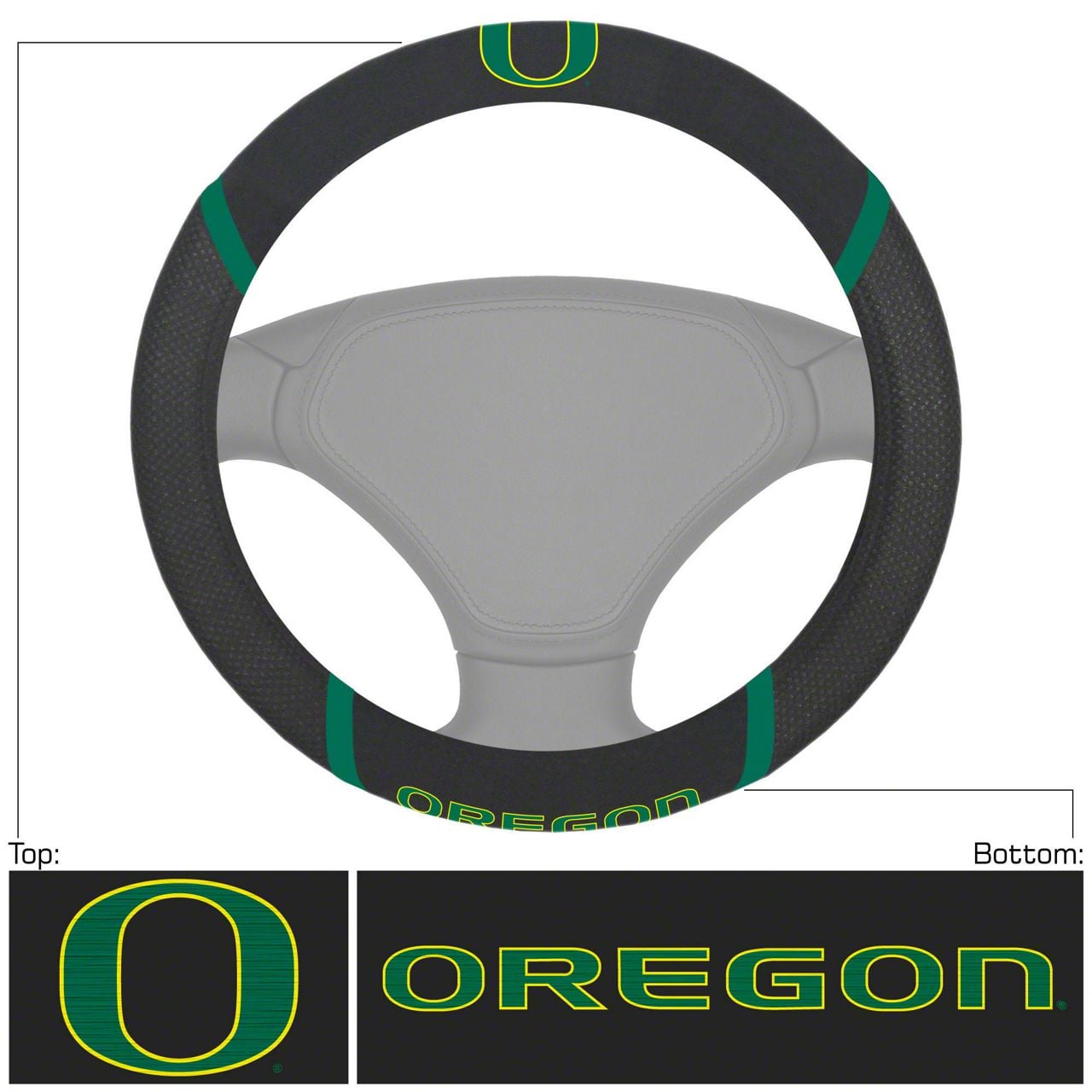 Steering Wheel Cover with University of Oregon Logo; Black (Universal; Some Adaptation May Be Required)