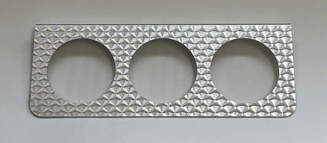 These Larger Undermount Gauge Panel feature gauge holes used for 2-5/8" diameter gauge holes. Manufactured from .063" aluminum with a beautiful engine turned finish using 1/2" diameter swirl pattern. Great eye candy for any street rod or muscle car. Comes in a number of configurations depending on how many gauges are needed. A clear film is put over the product to protect it during shipping. Gauges not included. UPS or Postal Service shippable.