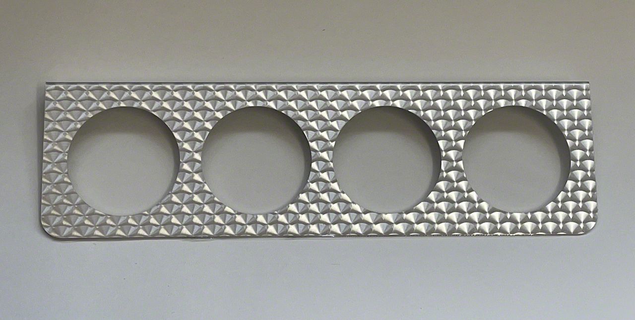 These Larger Undermount Gauge Panel feature gauge holes used for 2-5/8" diameter gauge holes. Manufactured from .063" aluminum with a beautiful engine turned finish using 1/2" diameter swirl pattern. Great eye candy for any street rod or muscle car. Comes in a number of configurations depending on how many gauges are needed. A clear film is put over the product to protect it during shipping. Gauges not included. UPS or Postal Service shippable.