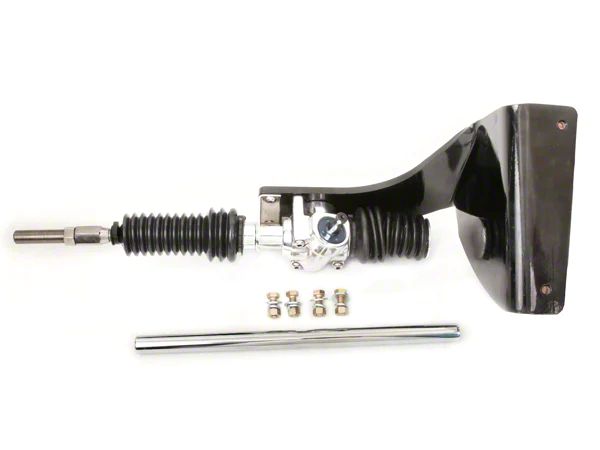 The rack comes mounted to the bracket with drag link tube and mounting hardware. You will also need some U-joints and a shaft to connect down to the pinion. This manual rack will handle vehicles around 3500 lbs, check with engineering for any heavier applications.