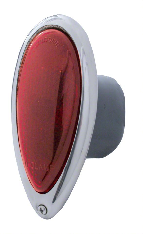 Beautiful all red glass lens. Powder coated black housing for rust protection. Pre-installed 12V 1157 bulb. Use green and black nylon wires for that vintage look.