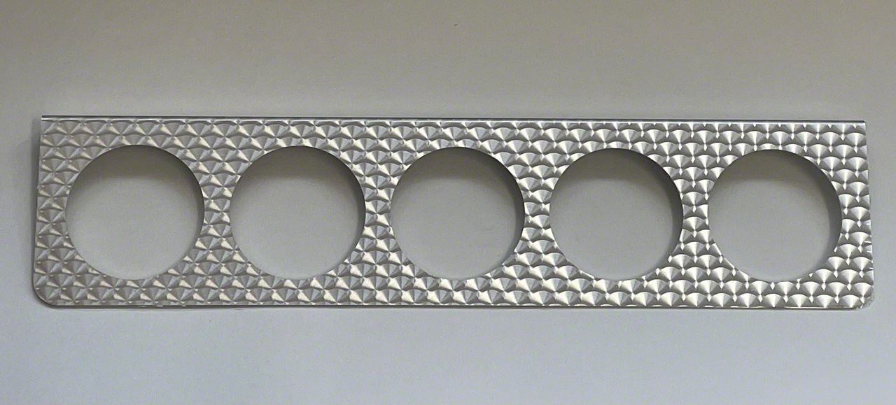 These Larger Undermount Gauge Panel feature gauge holes used for 2-5/8" diameter gauge holes. Manufactured from .063" aluminum with a beautiful engine turned finish using 1/2" diameter swirl pattern. Great eye candy for any street rod or muscle car. Comes in a number of configurations depending on how many gauges are needed. A clear film is put over the product to protect it during shipping. Gauges not included. UPS or Postal Service shippable.