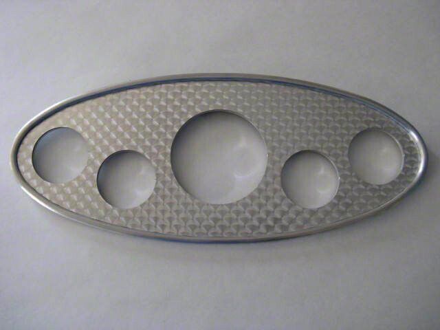 Our 1932 Ford Style Dash Panel is machined from 3/8" aluminum plate with a 1/4" rounded edge. The panel is recessed for our beautiful engine-turned insert, giving it a classic look. It features holes for a 3 3/8" speedometer and four 2 1/8" diameter instruments. Overall size is 5 1/8" tall and 15" wide. Gauges are not included. This will not interchange with an original 1932 Ford, due to our design being larger.