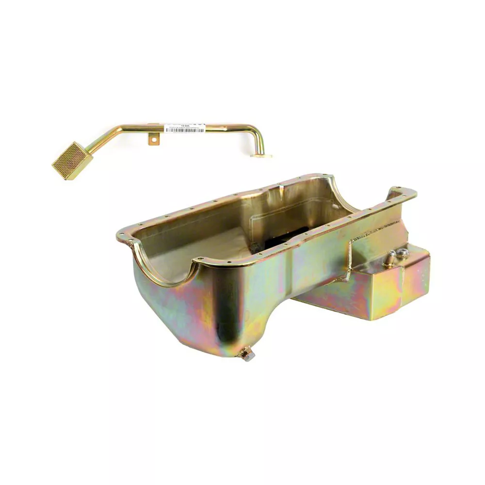 This oil pan is a "T" style rear sump oil pan with a 7 quart capacity and does include the required oil pump pickup.