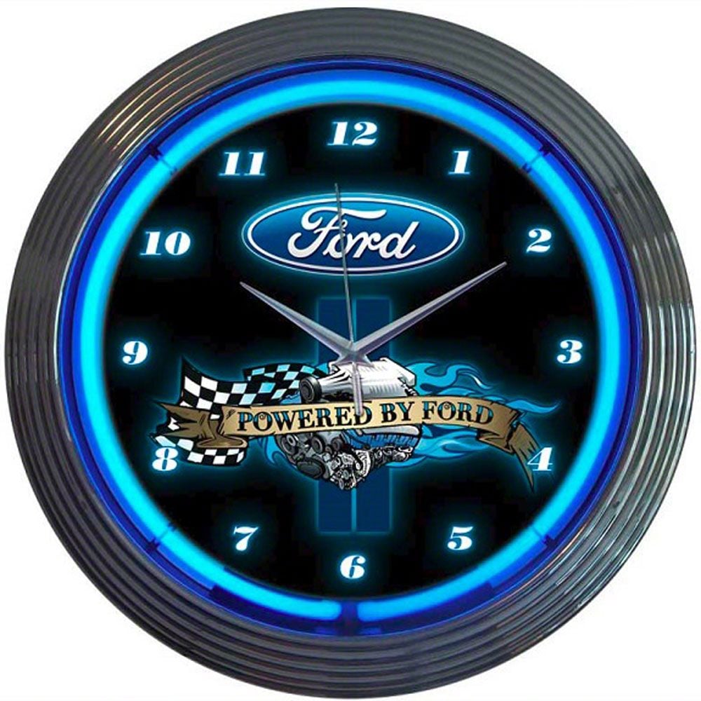 These Neon Clocks feature a hand blown ring of real glass neon, generating 25 watts of light. They have glass faces and feature multi-tiered art deco styles rims. The quartz movement clock operates on one AA battery (not included). The neon light is powered by an AC adapter (included) that plugs directly into a wall outlet. Give your home or 'Man Cave' the fabulous glow of real neon!