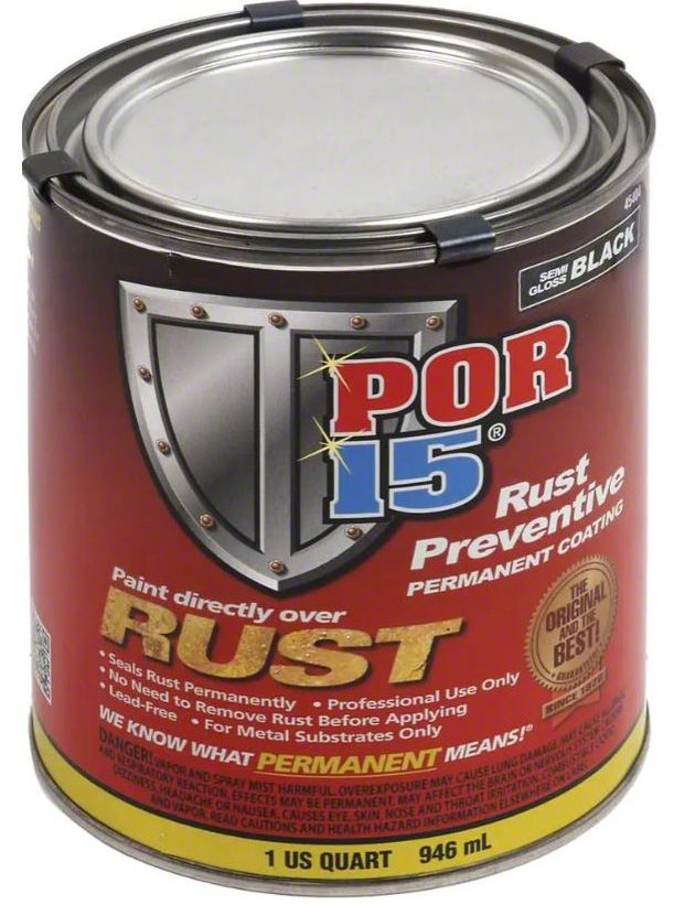 Rely on POR-15 to restore your car with a rock-hard, non-porous finish that won't chip, crack, or peel and prevents recurring rust by sealing your metal against exposure to moisture. The high-tech, high performance, rust-preventive coating designed for direct application on rusted metal surfaces not only covers the existing rust, it also prevents the reoccurrence of rust as well. Available in clear, gray, silver, and black, these non-porous POR-15 rust preventive paints are ideal for a quick visual improvement anywhere there's rusty or bare metal on your vehicle. Count on Eckler's to provide you with the parts and supplies you need to make your ride look like new again.