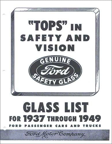 Glass list for passenger cars and trucks. Part numbers listed for all models.