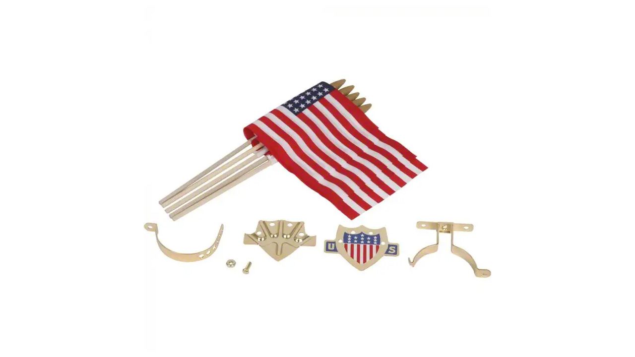 The flag holder clamps on to the radiator neck, and is adjustable, so it will fit many different vehicles. The clamps adjusting screws are on the side, so they will not interfere with lifting the hood. The holder has an American shield and US painted on it. This will not fit a Model A, because the radiator neck is not long enough to accept the clamp.