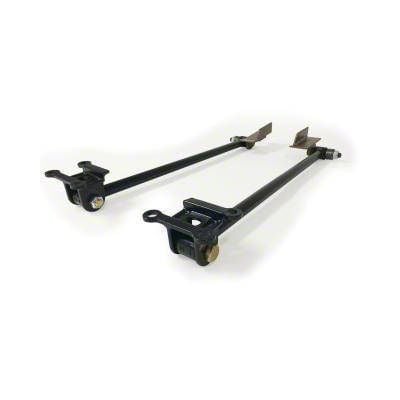 New concours reproduction under-ride traction bars for 1964-66 Mustangs are now made by Scott Drake. These are reproductions of the traction bars originally installed on 66 Shelby GT350s by the factory to eliminate axle wrap and wheel hop. They feature authentic details to perfectly match the appearance of the originals. The heavy-wall tubular bars have cast ends with correct "M-1" markings. The unique 3-bolt cast axle mount brackets have accurate "10-70" markings just like they did in 1966. The original bars were made from thin wall tubing and are prone to bending. Scott Drake traction bars are made to handle more power with super strong .187 wall tubing that is twice the thickness of the competition. Each kit is finished in a durable semi-gloss black powder coating for a lasting show qua