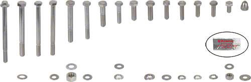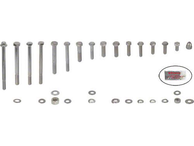 You think you have detailed the engine bay to the max? What about those rusting mismatched bolts? Step up to our engine hardware kits. For one low price, you get brand new stainless steel hardware for the oil pan, timing chain cover, water pump, thermostat housing, intake manifold and valve covers.