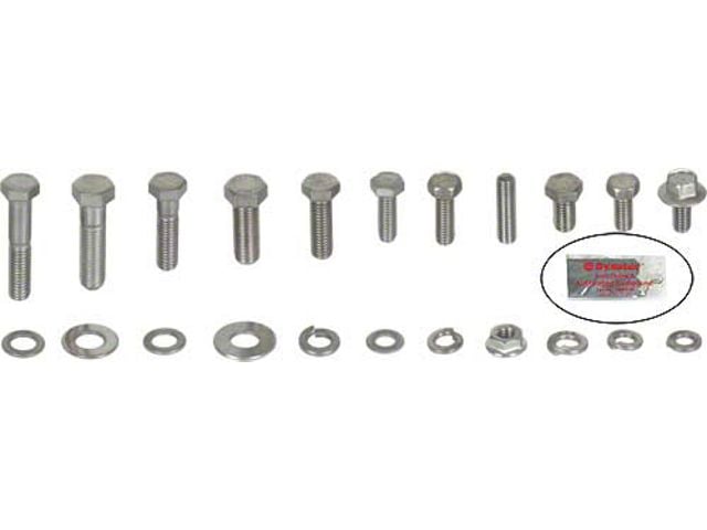You think you have detailed the engine bay to the max? What about those rusting mismatched bolts? Step up to our engine hardware kits. For one low price, you get brand new stainless steel hardware for the oil pan, timing chain cover, water pump, thermostat housing, intake manifold and valve covers.