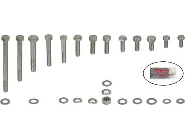 You think you have detailed the engine bay to the max? What about those rusting mismatched bolts? Step up to our engine hardware kits. For one low price, you get brand new stainless steel hardware for the oil pan, timing chain cover, water pump, thermostat housing, intake manifold and valve covers.