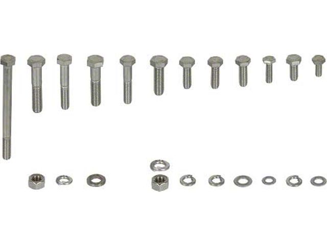 You think you have detailed the engine bay to the max? What about those rusting mismatched bolts? Step up to our engine hardware kits. For one low price, you get brand new stainless steel hardware for the oil pan, timing chain cover, water pump, thermostat housing, intake manifold and valve covers.