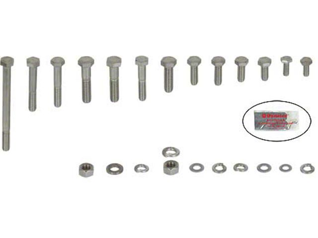 You think you have detailed the engine bay to the max? What about those rusting mismatched bolts? Step up to our engine hardware kits. For one low price, you get brand new stainless steel hardware for the oil pan, timing chain cover, water pump, thermostat housing, intake manifold and valve covers.