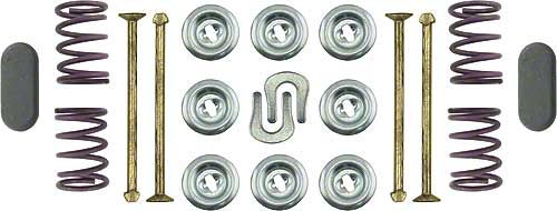 Kit contains hold down springs, cups, nails, C clips & dust covers for 1 axle (2 wheels).