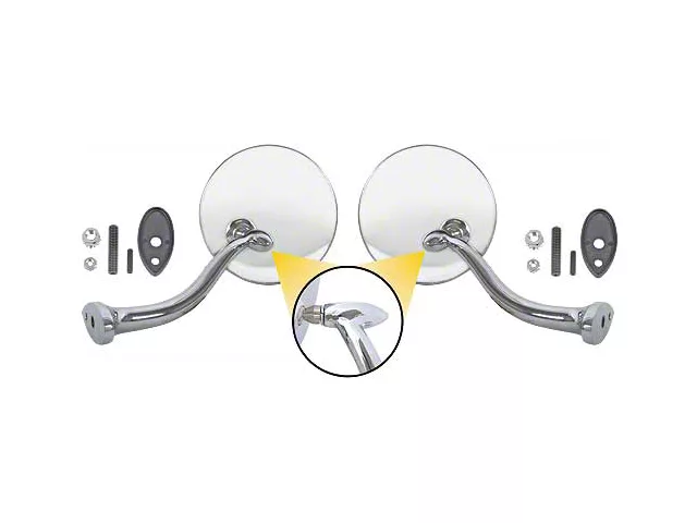 While not original, these swan neck mirrors are a beautiful addition to any truck. The stainless steel head is polished to a high gloss and attached to a chrome plated swan neck arm. All the mounting hardware is included, as well as a beaded rubber mounting pad.