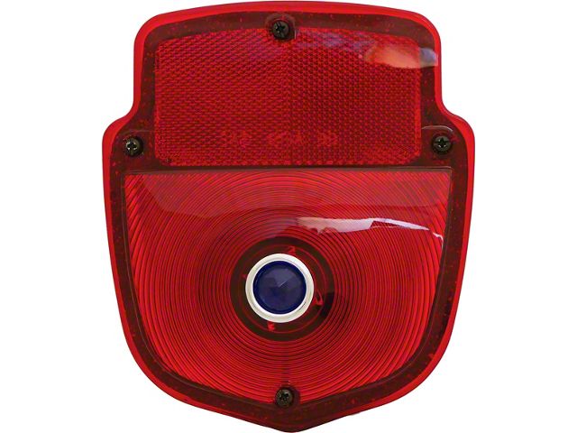 Pickup Truck Tail Light Assembly - Flareside Pickup - Shield Type - Chrome Housing - Left - With Glass Blue Dot Lens (55-79 F-100; 55-79 F-250; 55-79 F-350; 75-79 F-150)