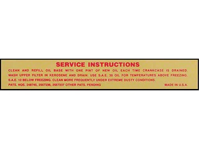 Air Cleaner Decal, Service Instructions (55-56 Ford Thunderbird)