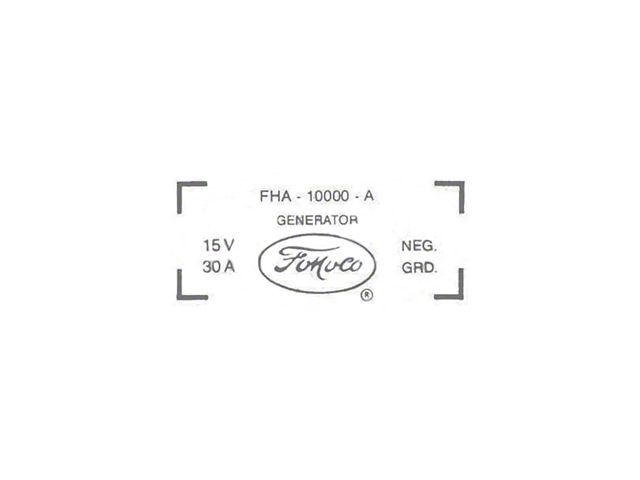 Ford Thunderbird Generator Decal - 30 Amp Generator - 352 V-,8 Without Air Conditioning - FHA-10002-A