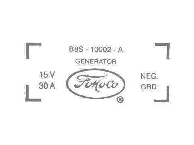 Generator Decal, 30 Amp Generator, 430 V8 Without Air Conditioning, B8S-10002-A (59-60 Ford Thunderbird)