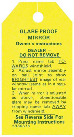 Ford Thunderbird Glare-Proof Mirror Instruction Decal