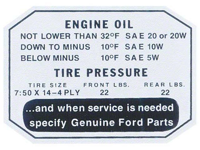 Ford Thunderbird Glove Box Decal - Engine Oil / Tire Pressur,e