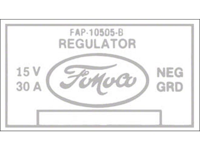 FAP-B is the Ford engineering number for the correct part. This number was ink-stamped on the part at the factory. If your original is missing or unreadable, select the most appropriate decal or tag from our listings.
