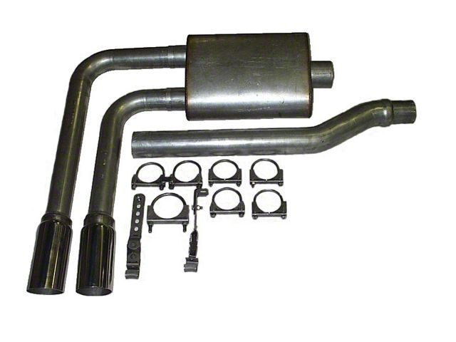 2.50-Inch Stainless Dual Exhaust System with HVS Performance Muffer and Polished Tips; Middle Side Exit (80-96 5.8L F-150, F-250 w/ 2-1/4-Inch Exhaust at the Converter)
