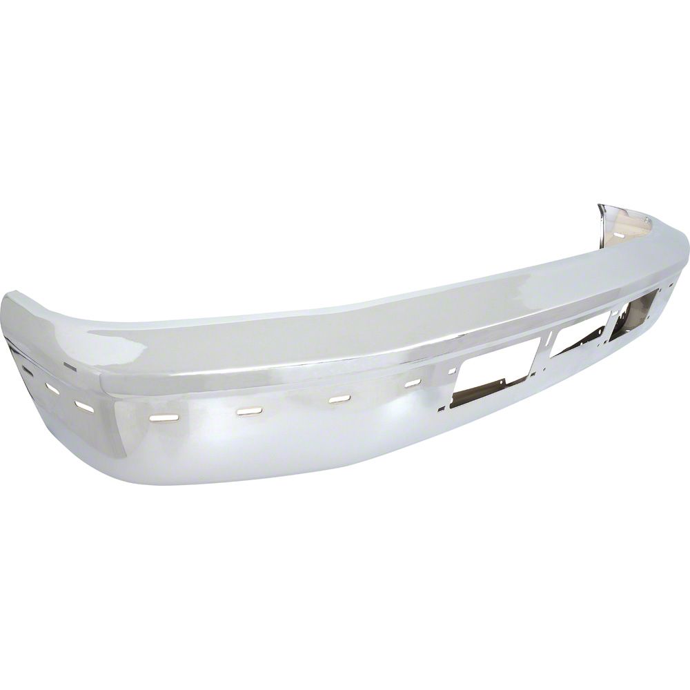 1992-96 Ford F150, F250, F350, Bronco; Front Bumper ; Chrome; with Pad Strip Holes