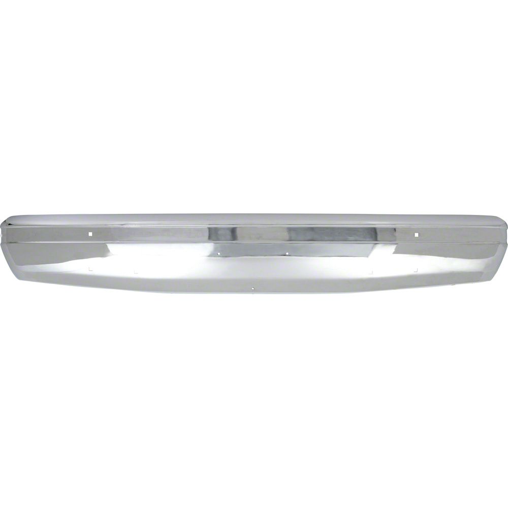 Reproduction front bumper without impact strip holes for 1987-91 Ford F-Series Truck and Bronco. This bumper features heavy gauge cold rolled steel construction with the correct mounting holes for the factory mounting brackets and hardware. It is coated in a quality chrome finish. Does not include brackets or hardware.