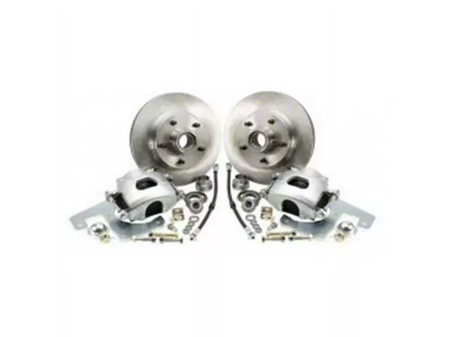 Fitment notes: A Minimum of a 15" wheel is required. Not all stock steel 15" wheels will work. Use the template to verify wheel fitment. Rotors have both a 5 x 5-1/2" pattern (studs installed) and a 5 x 4-1/2" pattern. Designed to work on OE drum brake spindles.