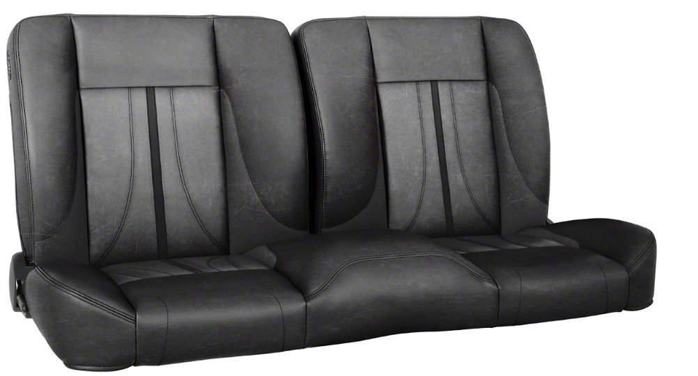 Pro-Series Sport-AR2 60-Inch Solid Back Bench Seat without Center Bolster; Black Distressed Vinyl with Black Stripe (80-86 F-100, F-150, F-250, F-350)