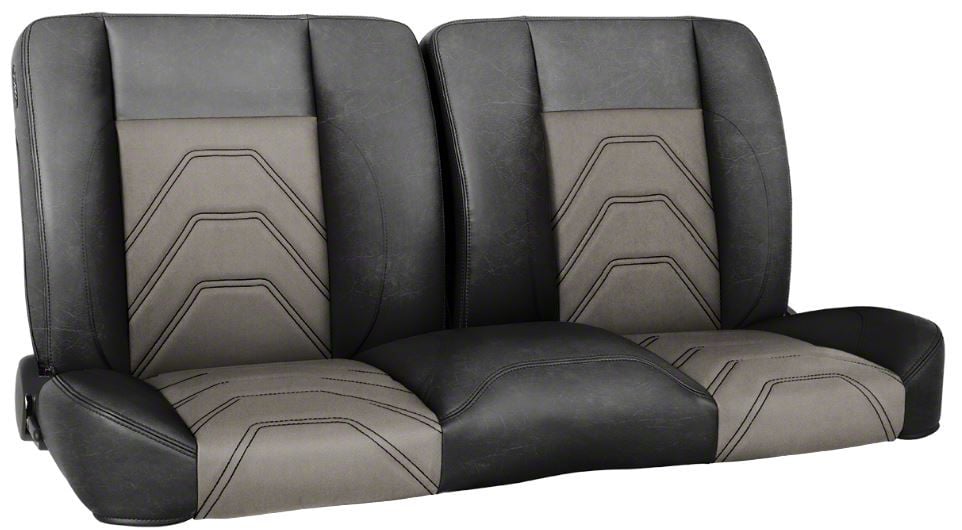 Pro-Series Sport-S 60-Inch Solid Back Bench Seat without Center Bolster; Black Distressed Vinyl/Medium Graphite Unisuede (80-86 F-100, F-150, F-250, F-350)