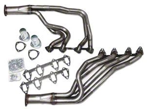These are the full length headers you have been waiting for. These were designed by racing legend and header designer Doug Thorley. They are the absolute best quality, best fitting header available. Important note: these were designed to fit stock V-8 cars. If you have swapped your engine, make sure your engine compartment configuration matches the original V-8 setup for proper clearance. Made in the USA! Lifetime warranty for the original, invoice holding purchaser.Some applications may require a power steering bracket.