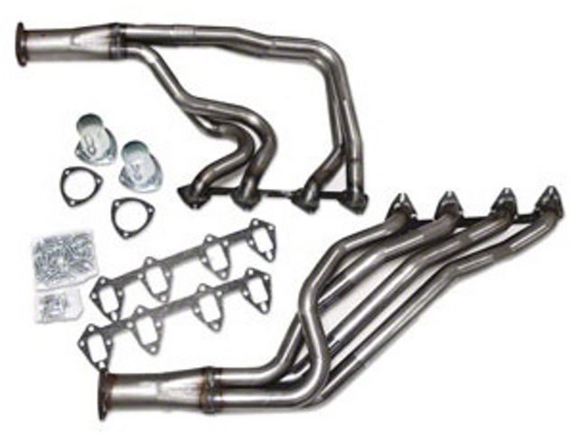 These are the full length headers you have been waiting for. These were designed by racing legend and header designer Doug Thorley. They are the absolute best quality, best fitting header available. Important note: these were designed to fit stock V-8 cars. If you have swapped your engine, make sure your engine compartment configuration matches the original V-8 setup for proper clearance. Made in the USA! Lifetime warranty for the original, invoice holding purchaser.Some applications may require a power steering bracket.