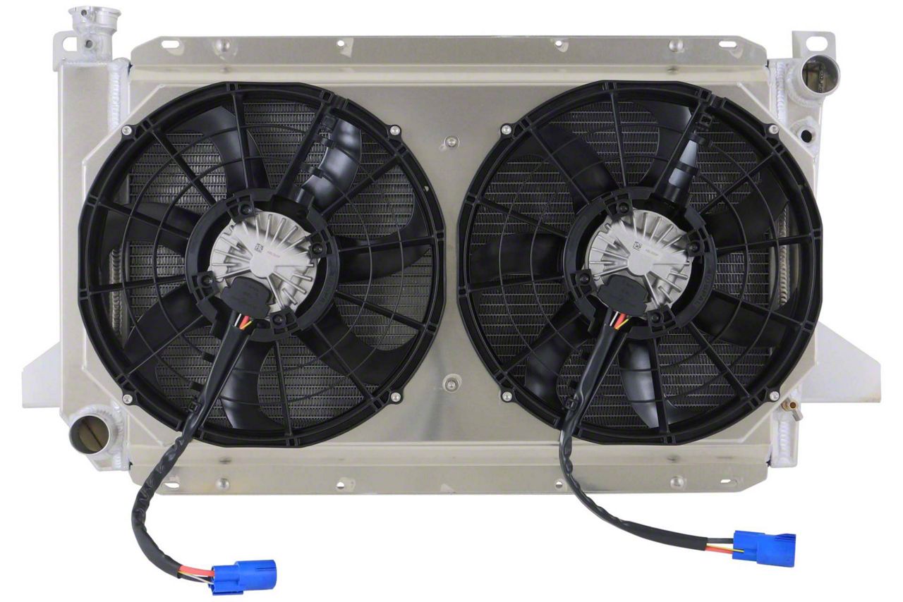 Aluminum Shroud with BRUSHLESS Fans. Electrical kit NOT included, but is available. If you are considering adding this to your Wizard Cooling radiator, you will want to confirm how much room you have to work with between the radiator and the engine. This fan package is 3.5" thick, once added to your radiator your total thickness of your radiator and fan package will be 6.5" thick.This system is designed to fit Wizard Cooling radiators. If you are planning to mount this to a NON Wizard radiator please be aware there may potentially be some "massaging" required. Although it may work with other radiators in the market there was no design intent for it to fit any other unit than the Wizard Cooling base part numbers starting with "1-1451-"This kit includes: Full Aluminum dual chamber shroud and DUAL 14", 300 watt, SPAL BRUSHLESS Fans.